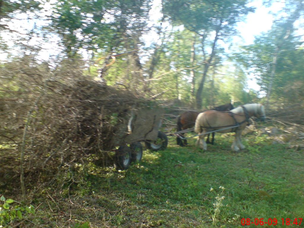 Hopkörning av ris i samband med röjning i en hage