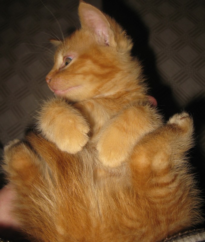 Han ser ju ut som min brorsa Åkes Murre-katter! Båda lika hærligt mørkrøda. Tyværr har båda gått ur tiden. Jag håller med om att det ær mycket vanligare med andra røda nyanser æn sådær riktigt grannt mørkrød och att han borde få førøka sig. Tyværr har jag ingen brud åt honom. Lycka til med lille Oskar!
