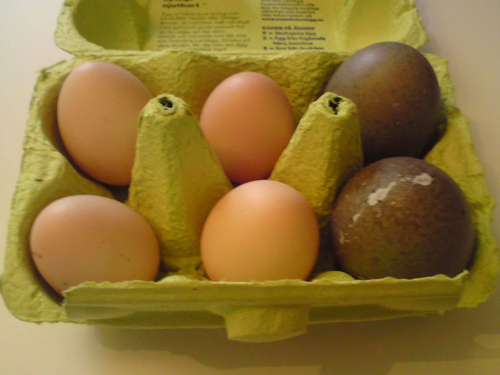 då hade vi äntligen fått ihop till en liten kartong  4 höns och 2 ank ägg.. ank äggen är super goda och passar super till att baka med eller göra äggröra med.