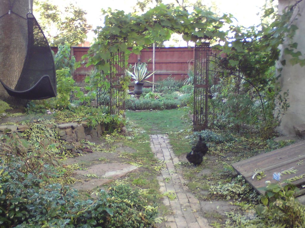 här ser man en del av vår trädgård som tyvärr ser lite trist ut då det börjar bli höst :/ hönsen och ankorna har tillbringat sommaren med att ligga och sola under våra palmer, sprätta i bambu snåren , bada i dammen och käka fikon.