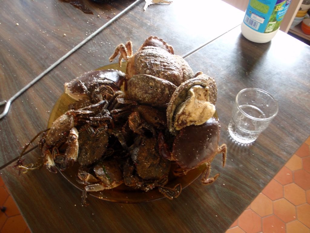 Krabbor och abalone- Abalone är ganska reglerade och är den finaste som man kan fånga. Den sitter fast under stora stenar ganska lång bort. Den är svart att hitta och fånga-.