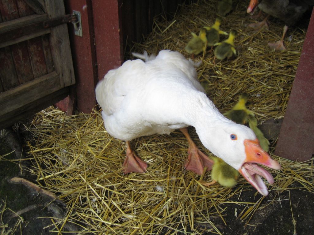 Gåsfar visar näbben. Sköter sitt jobb och vaktar ungar och fruar väl.