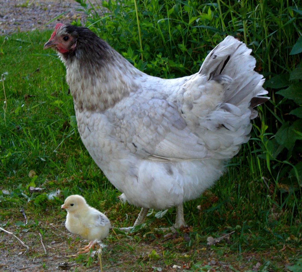 En fin och duktig höna med "vattrad" fjäderskrud.