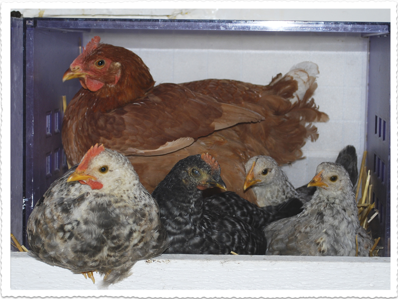 Trion är nämligen inte hennes ungar men hon följer troget med dom till deras låda.