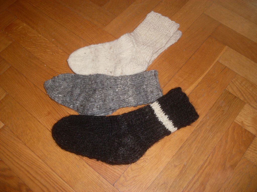 Handstickade raggsockor i handspunnet ullgarn. Finns att köpa på annons under övrigt finnes, rubrik raggsockor.