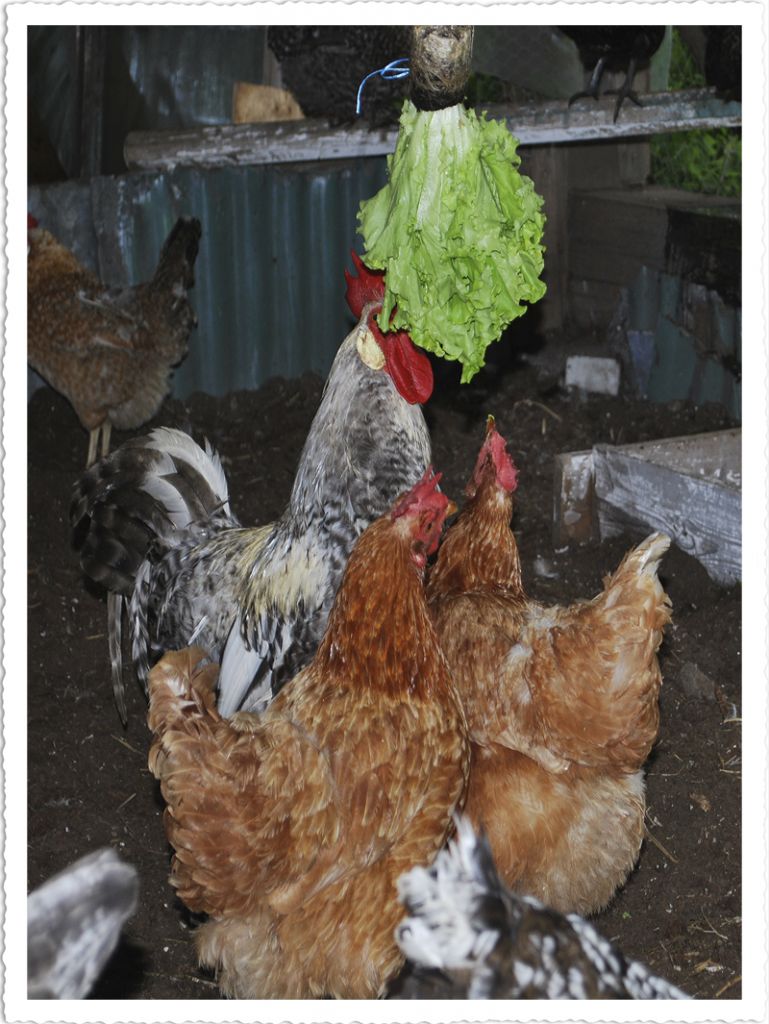 Idag har det nog regnat hela dagen.Istället för att stå ihopkurade någonstans så blev det hönsgympa.Kan vara bra att få upp pumpen och blodcirkulationen lite..=)