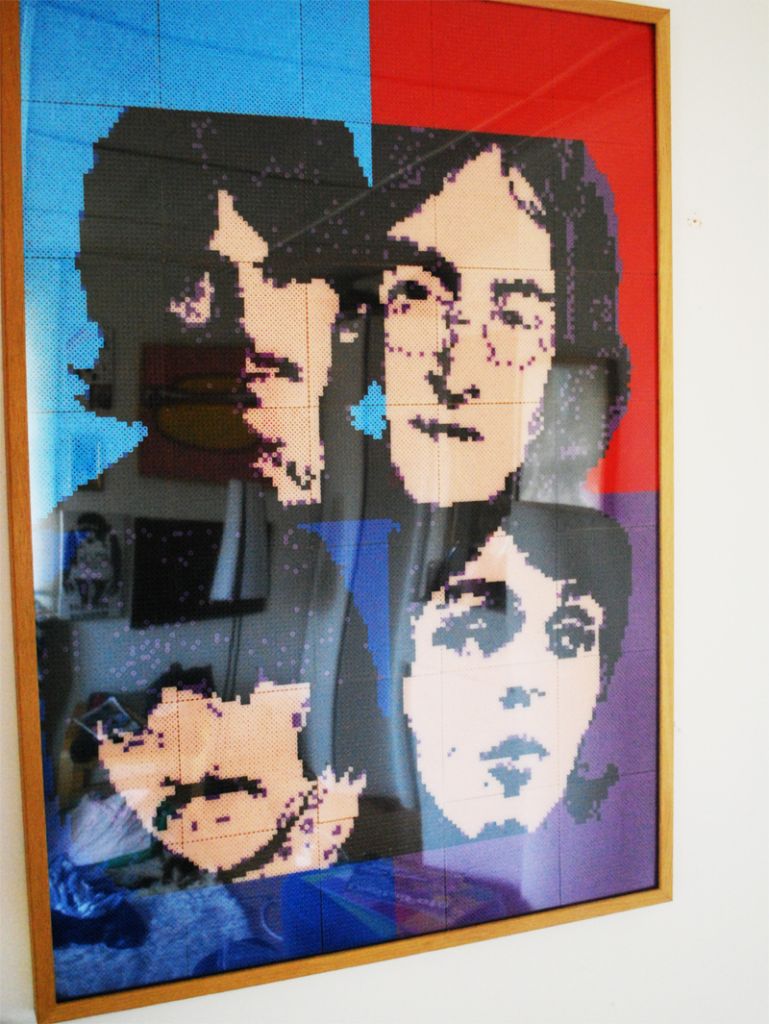 -Du gillar väl Betles sa linda till mej en dag.. Vi har bara kännt varandra i sådär 22 år men jag antog att hon hade något i görningen. Jag fick den här tavlan såklart. Det coola är att ansikterna lyser på kvällen.(självlysande ) Men tavlan består av ca 35000 pärlor. Men nu ska se hennes Marylin monroe tavlor..Helvete
