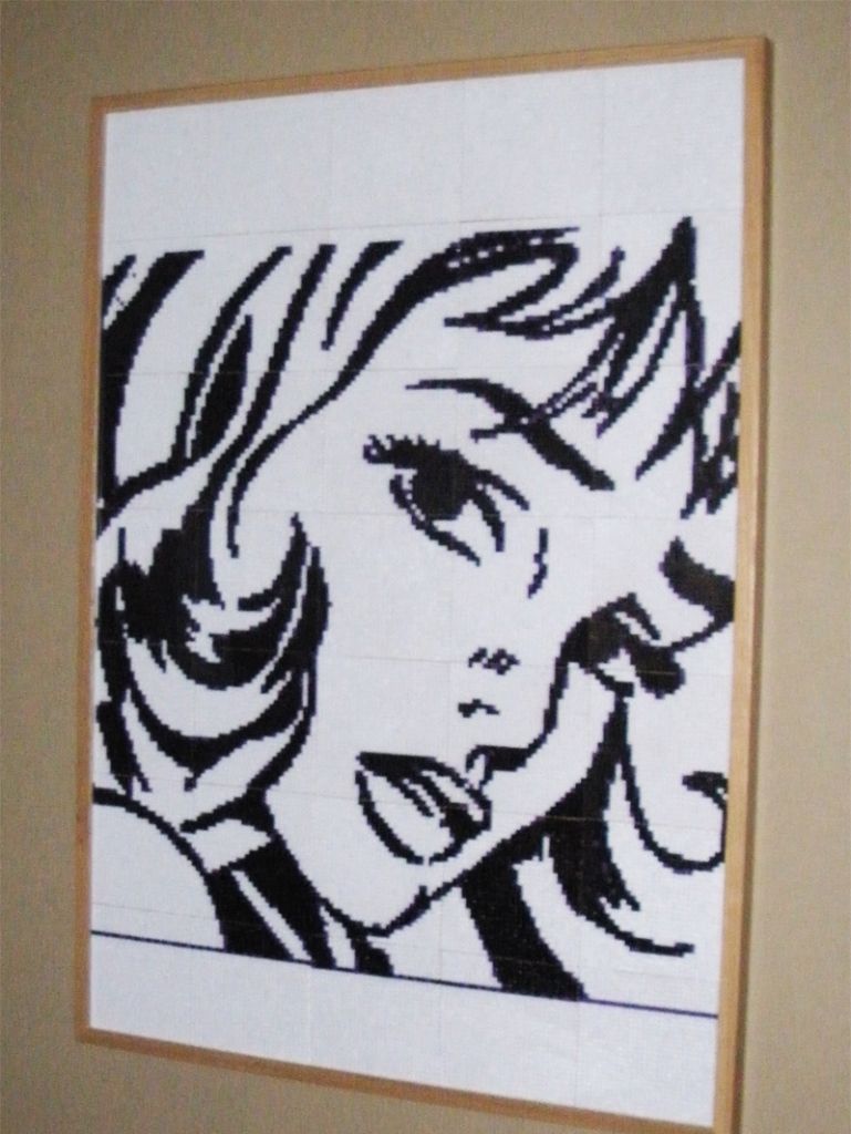Det är en lichenstein version i svart och vitt.. Av Linda denna tavla med.. Så jäkla grymm.. Måste ju visa dom hon ju inte bara låta dom hänga i garderoben ju..=)
