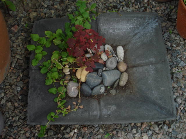 blandande i svart pigment... gjorde en form av kartong som jag plastade in ...hål i botten för vattnet planterade små söta växter har klarat sig i månader!