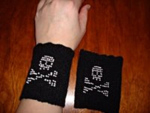 Förra året låg mormor på sjukan.Jag stickade muddar till henne för hon gillar sådana. Tänkte jag skulle tuffa upp henne med lite pärlor och döskallemotiv.. Va tror ni hon gör.. Hon stoppade löständerna i dom..