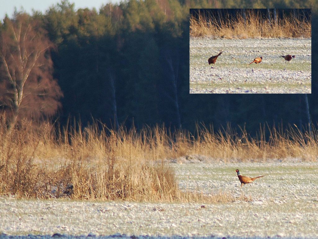 I våras så hade jag en fasantupp här till min stora lycka..Men inga fruar.Så pappa och jag åkte till Börje och köpte 3 ståtliga fasandamer. Sen har vi inte sett röken av någon.. Imorse när jag åkte till mormor fick jag se på åkern 4 st fasaner.. Underbart..