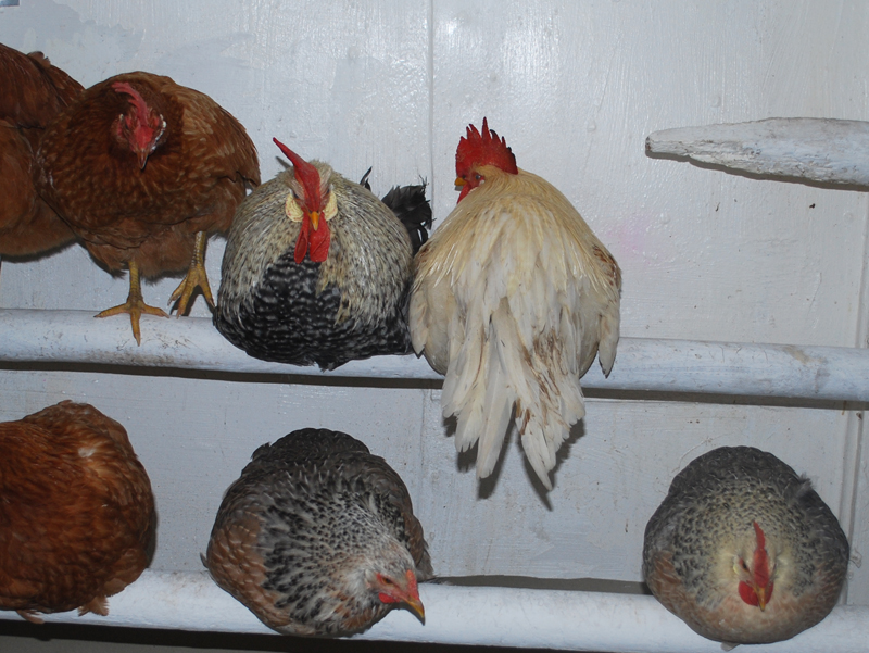 Steve är stora tuppen nu ,snart ett år oxå. Han har sina egna tjejer som han kör med.. Ikväll när jag skulle ner och släcka så hittar jag han brevid Alfred.. Jag tror jag börja lipa.Så himla gulligt..
