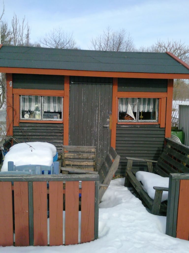 Denna billiga färg som vi även använder till stugan fungerade ypperligt!! Som sagt det är en liten kolonilott!!
