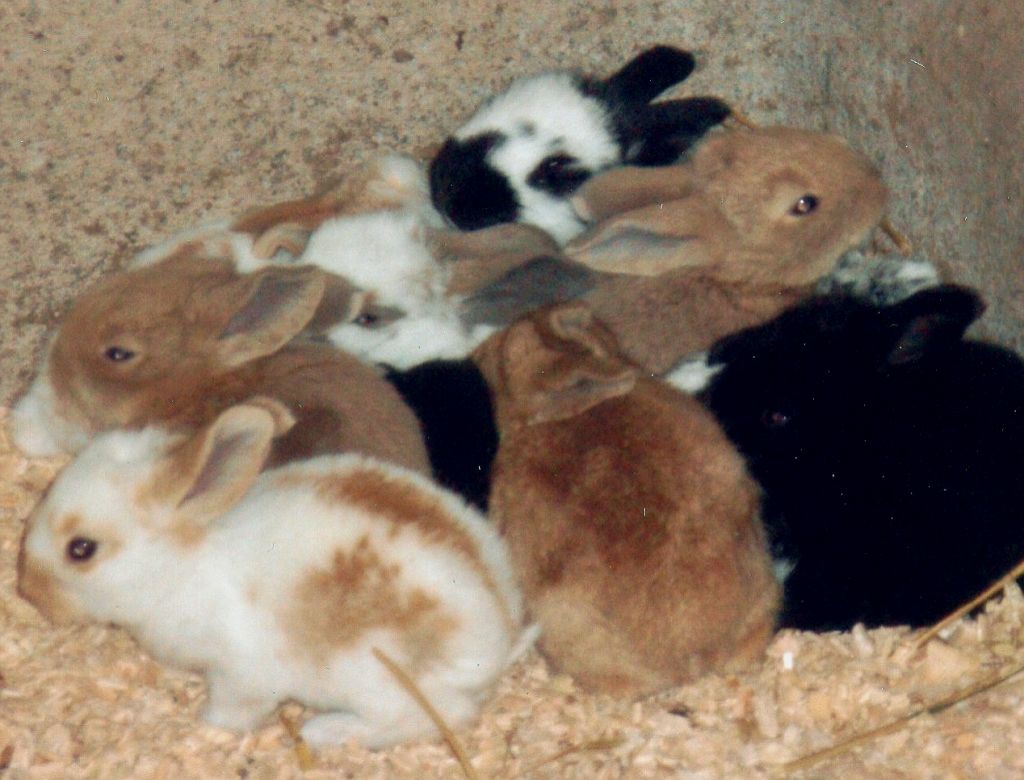Mamman till de här ungarna Tysk jätteskäck, pappan korsning Belgisk jätte/Tysk jätteskäck.