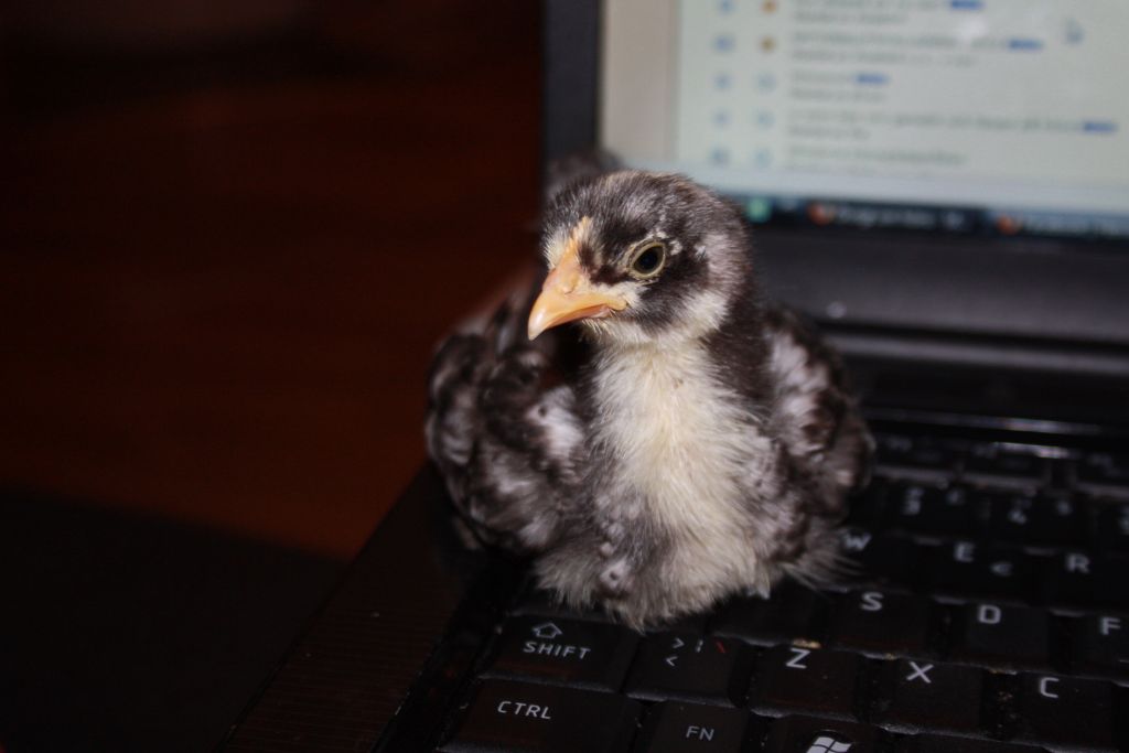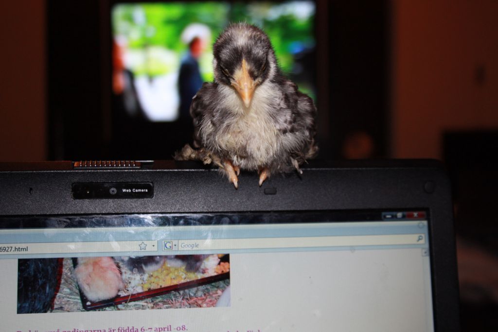 här sitter en liten dv kochin kyckling på min dator, han kollar när jag skriver