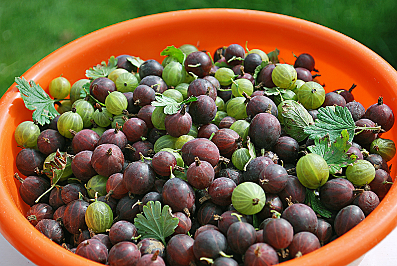 Jag har det stora nöjet att bo granne med sthlm stads gamla trädgårdsarkitekt.Och eftersom min käre morbror gick loss i sommras med gräsklipparsaxen så rök även min krusbärsbuske.Men grannen var så snäll och lät mig plocka från hans buskar..