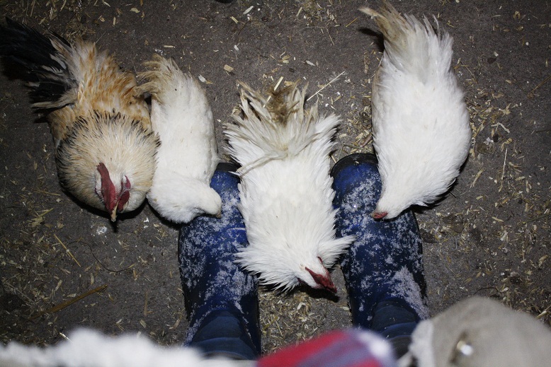 Haha detta känner jag ingen från mina höns jag hade! Dem älskade att picka på mina skor när dem var snöiga! haha!