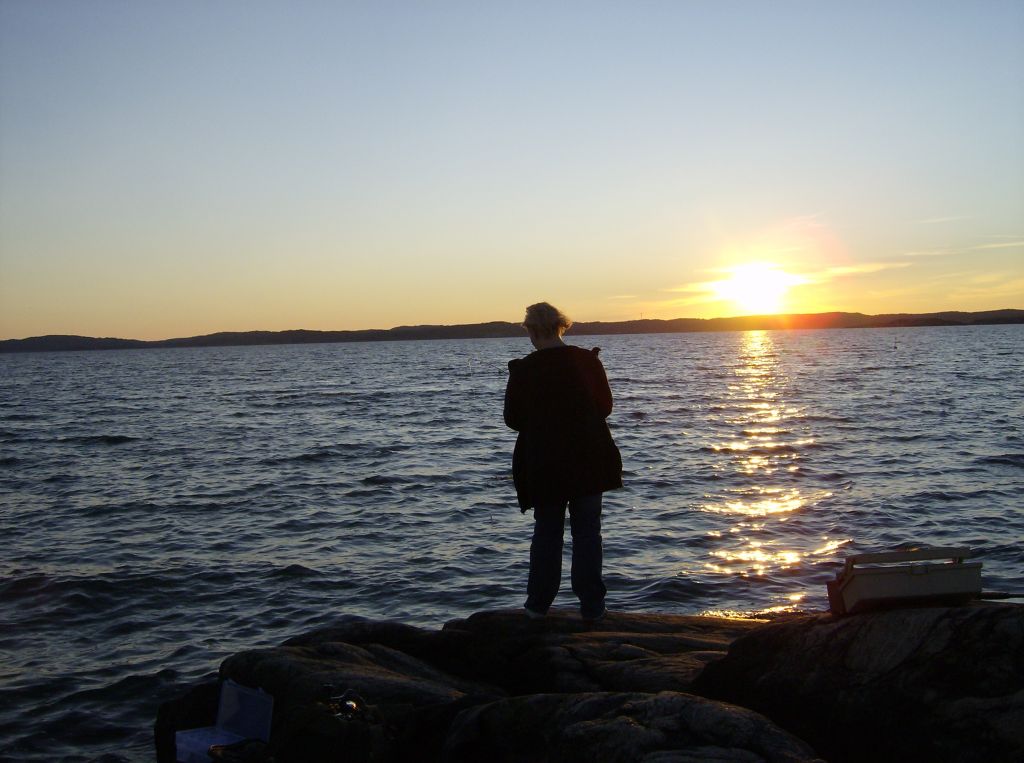 Frugan fiskar näbbgädda på vadholmen/Grimbart