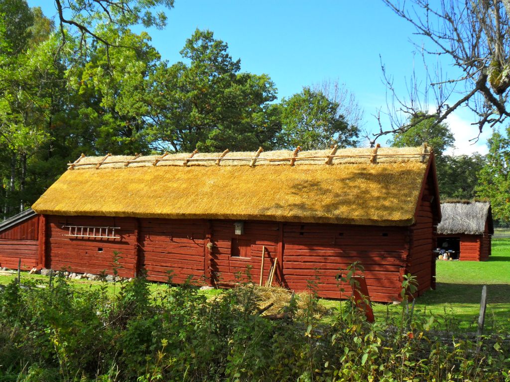 Blev inspirerad att ladda upp en fin bild. I slutet av augusti eller om det var någon gång i september fick jag åka upp till Linköping och lägga mitt första halmtak! Har tidigare bara lagt vasstak~ (nu odlar jag långhalm till min smedja och mitt hus ) (har gått som lärling sedan hösten 07 om jag inte misstar mig)