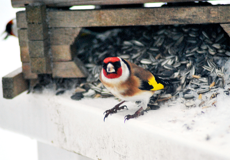 Titta vilken fin kanariefågel sa farsan en dag.. Han var ju kul.. Det är ju den förtjusande Steglitzen som kom på besök.. Denna bilden är från förra vintern..I år har det varit dåligt med dessa vackra fåglar..