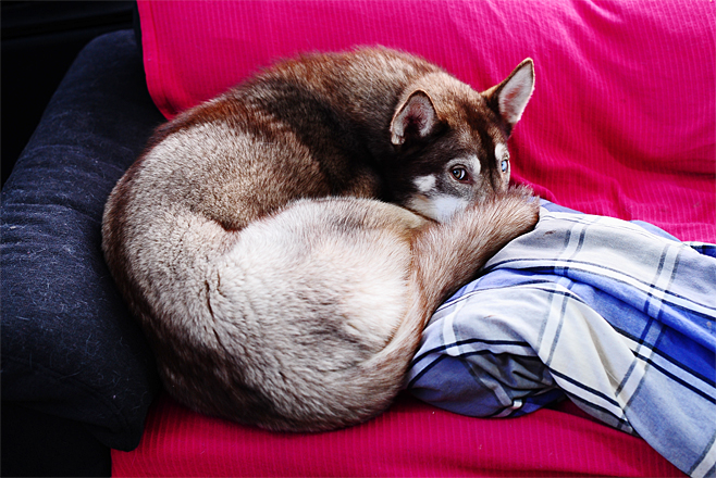 Vi har för närvarande fyra hundar av raserna Alaskan Husky(1), Siberian Husky(2) och Chihuahua(1). I framtiden planerar vi att utöka flocken med en Siberian Husky hane och starta avel i mindre skala.