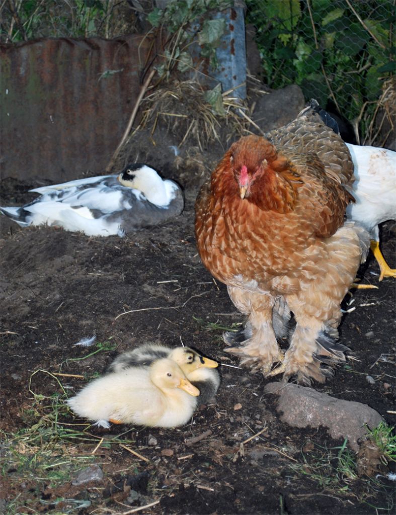 Maggan som numera är ruvhöna på heltid tog även hand om ankungarna när dom var små i sommras.
