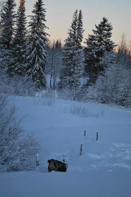 Avelsgalt på tillväxt i snölandskapet i Lappland.