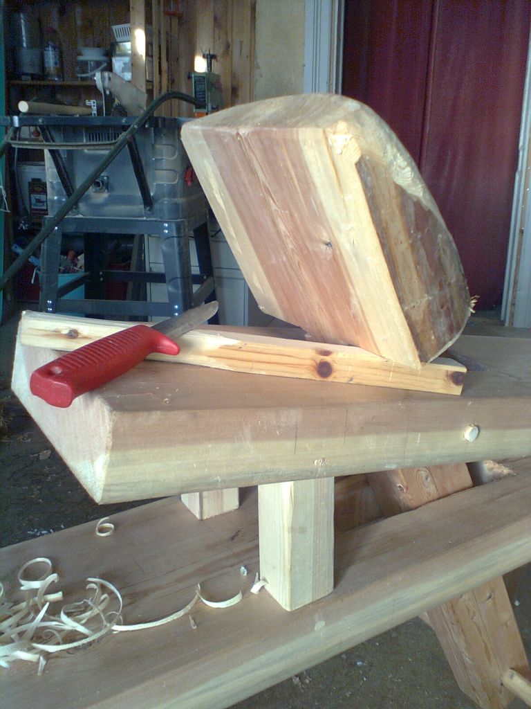 Såg en sån här hos bonderøven. Tyckte den var jätte händig till slöjd mm. Så började snickra en kväll. Ingen spik eller skruv, endast trä och lim. Bänken fungerar toppen....
