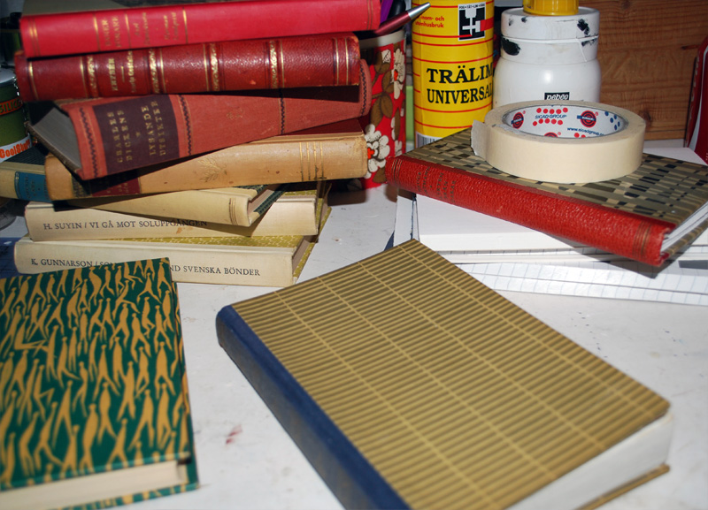 Ida när vi städade ut mormors gamla föråd så hittade jag 2 kartonger med grymt coola böcker. Förr i tiden vare snygga mönster som prydde omslagen. Jag kånkade självklart me mig allihopa..(morsan bara suckade och en del andra familjemedlemar).. Men jag har gjort om några till anteckningsböcker. Bara riva ur sidorna och klistra i en anteckningsbok..