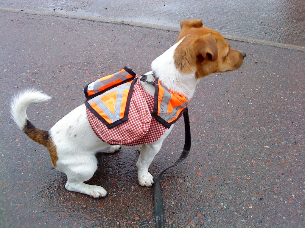 Ja, det är en jack russel. Mycket trvlig när han får jobba med kropp och psyke. Tack för hjälpen, med måtten. Fixade denna med ett mönster och har aldrig provat en förut. Om vi kommer ut på landet igen, drömmer jag om siberian huskey och då får Axel åka:)