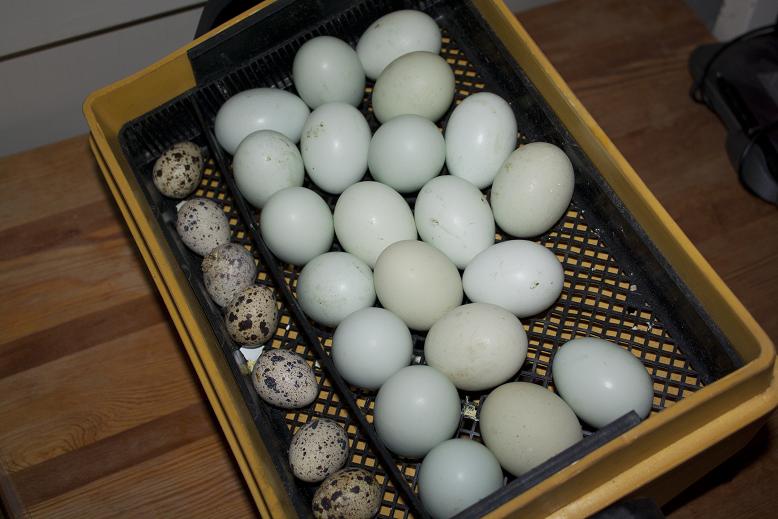 De mindre prickiga äggen är från Emils Jumbovaktelhöna.