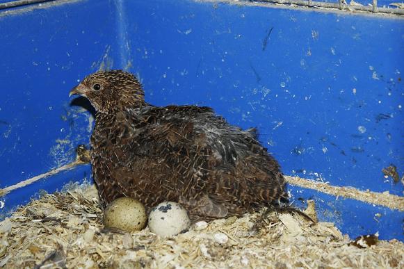 En av våra Japanska vaktlar har lagt sig för att ruva!!