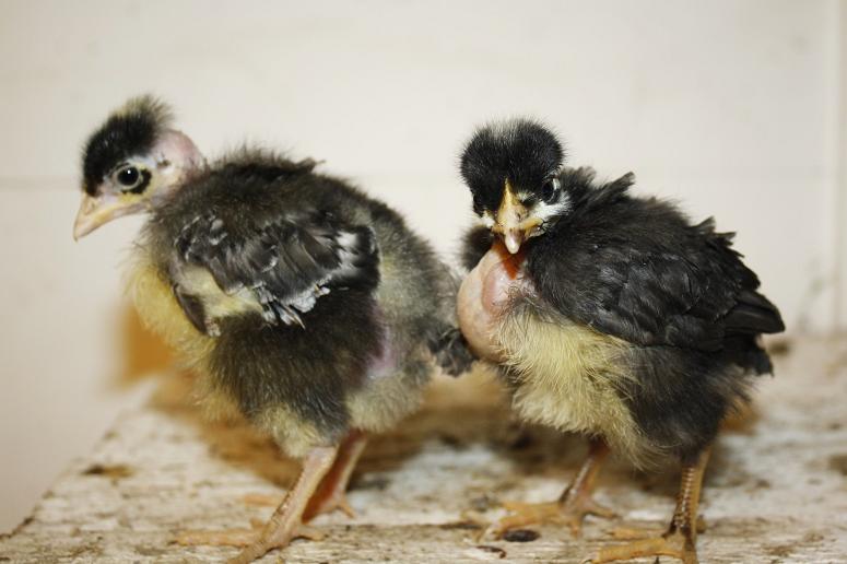 Pojke till vänster, flicka till höger... Vad jag tror... (Utgår från färgen på fjädrarna, gökfärgade, tupparna blir ljusare än hönorna... Sedan har den till vänster dubbelt så stor kam också, det ihop med fjädrarnas utseende gör mig mer säker på att det nog är en kille)