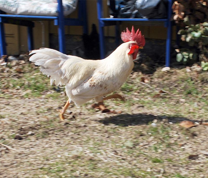 Han är så förbannad och springer så fort att haklapparna fladrar åt varsit håll.