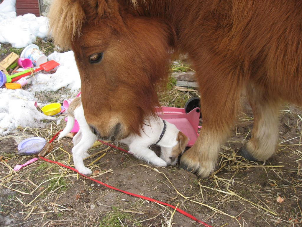 JR valpen Doris försöker gnaga på Pepsys hov...