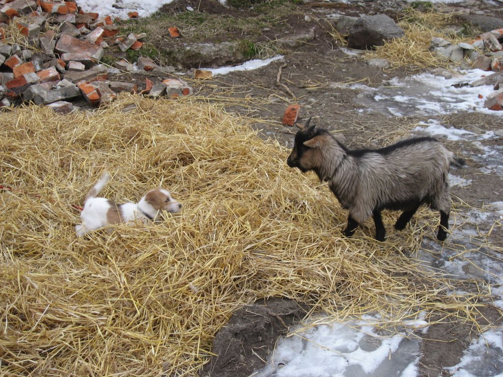 Doris och lilla Stjärna busar runt på gården