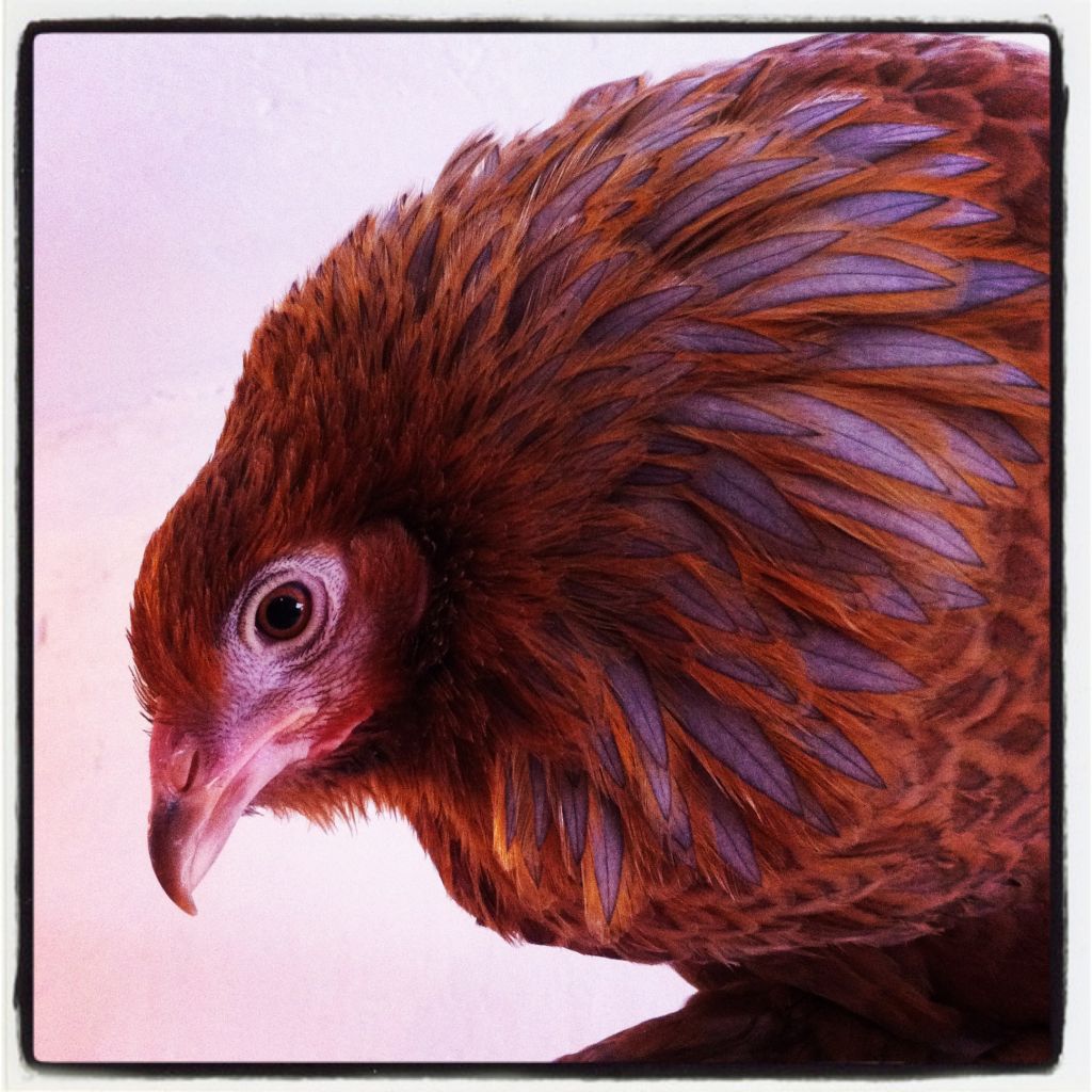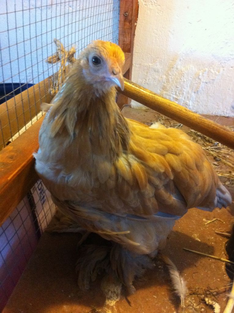 Herren i hönsgården. Korsning Araucana/Silkeshöna.