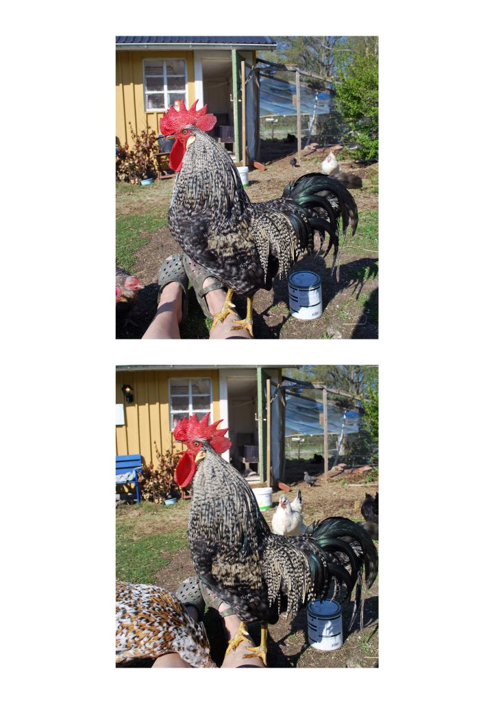 Alfred är den snällaste tuppen jag har men Märsta ligger inte långt efter.. Han är väldigt bussig och ger gärna ett extranummer då och då på mitt knä.. Sen är han en blandning av Marantupp och Blommehöna (Mojje) Min uppfödare fick se kort på Alfred och sa genast att han är en LjushårigMaran och inte Legbar.. Men han är lika fin endå...