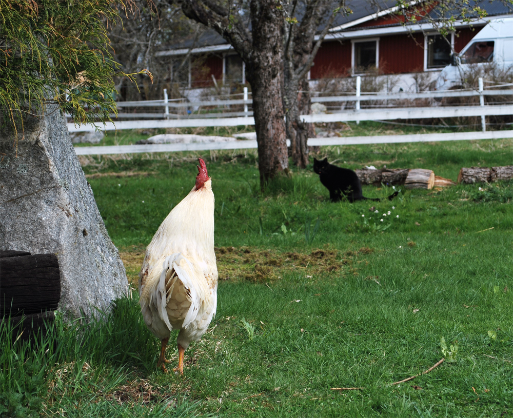 Tarzan är så förtjust i hönorna.. Igår han jag stoppa honom precis innan han skulle in i hönshuset.. Steve delar väl kanske inte denna nyblivna förtjusning med honom.. Men Tarzan är så snäll.. Han är nöjd bara han får ligga och titta på dom..
