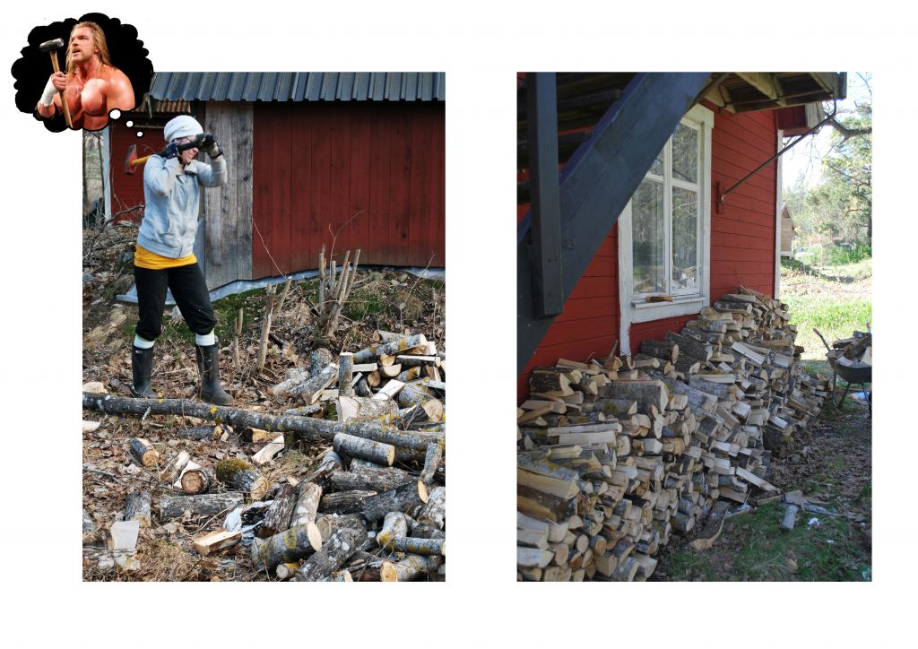 Hmm ja kära vänner.. Jag har hittat ett underbart "bliavmedenergi" sätt.. På kvällskvisten så svingar jag yxan tills jag blir trött.Blir en del på dagen oxå för den delen. Sen kan man ju undra va tusan jag ska med all ved till nu när varken min kamin eller öppna spis fungerar.. Jag får väl ta och laga dom kanske.. Nu är det mammas och pappas tur att få lite ved.. (De e Tripel H på bilden ovan mig..Han har ju visserligen en slägga men..=)..)