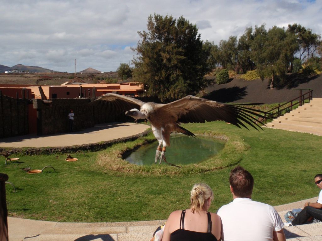Inflygande gåsgam. Fågelshow på Lanzarote.