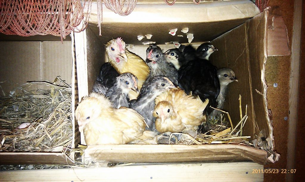 Hmmm...såg likadant ut i redet igår när jag kom ut..fast..nu var det 16 st där. Kanske ska fundera på extra värme??? eller skicka in ett större rede?? de små krymper ju inte direkt o redan nu så trångt att om någon vill sträcka sig ramlar de ut.....