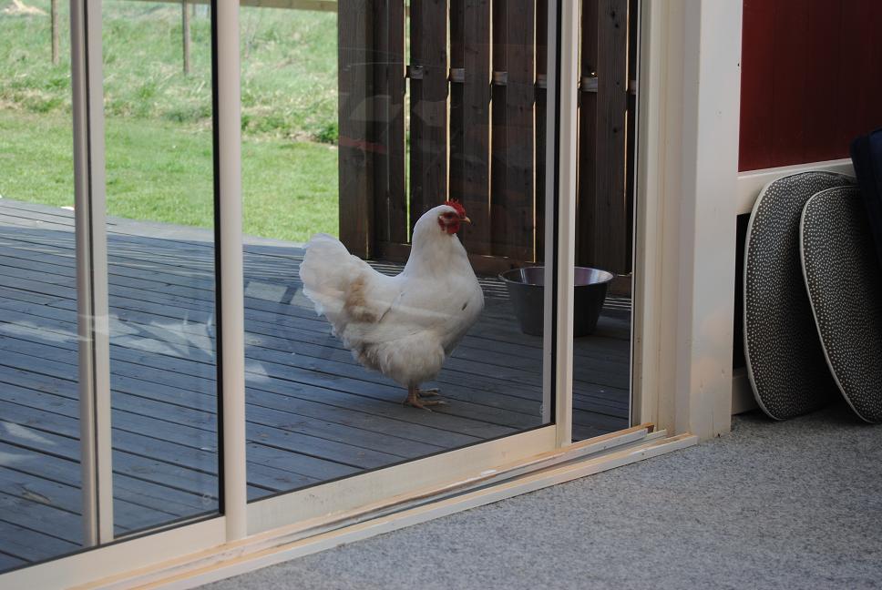 Kerstin försöker ta sig in på den inglasade terassen, ute-terassen har hon redan intagit, där brukar hon ligga intill vägen och sola