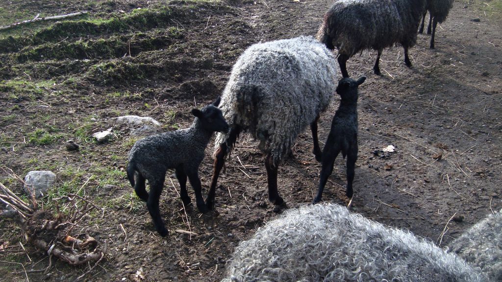 Det måtte vara skönt att ligga i vårsolen med nosen i mammas ull!  Från vänster Stracciatella, Faline och Tjalve.