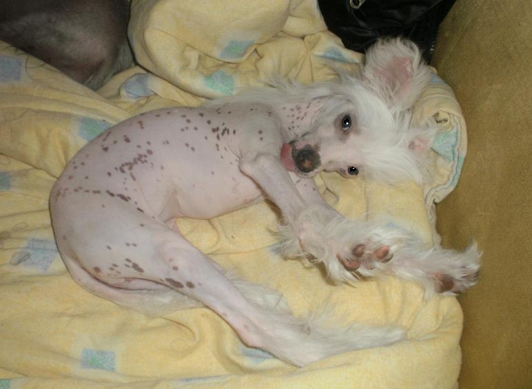 Vilar & tvättar sig själv. Ligger brevid husse & Lucky i soffan.