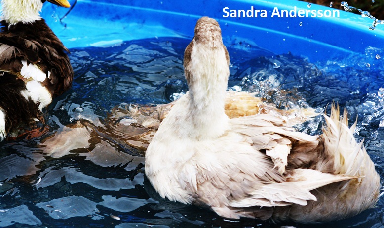 Om ni tittar lite till vänster, vid den mörka kvackisens bakdel så ser ni Saschenankans huvud under vattnet.