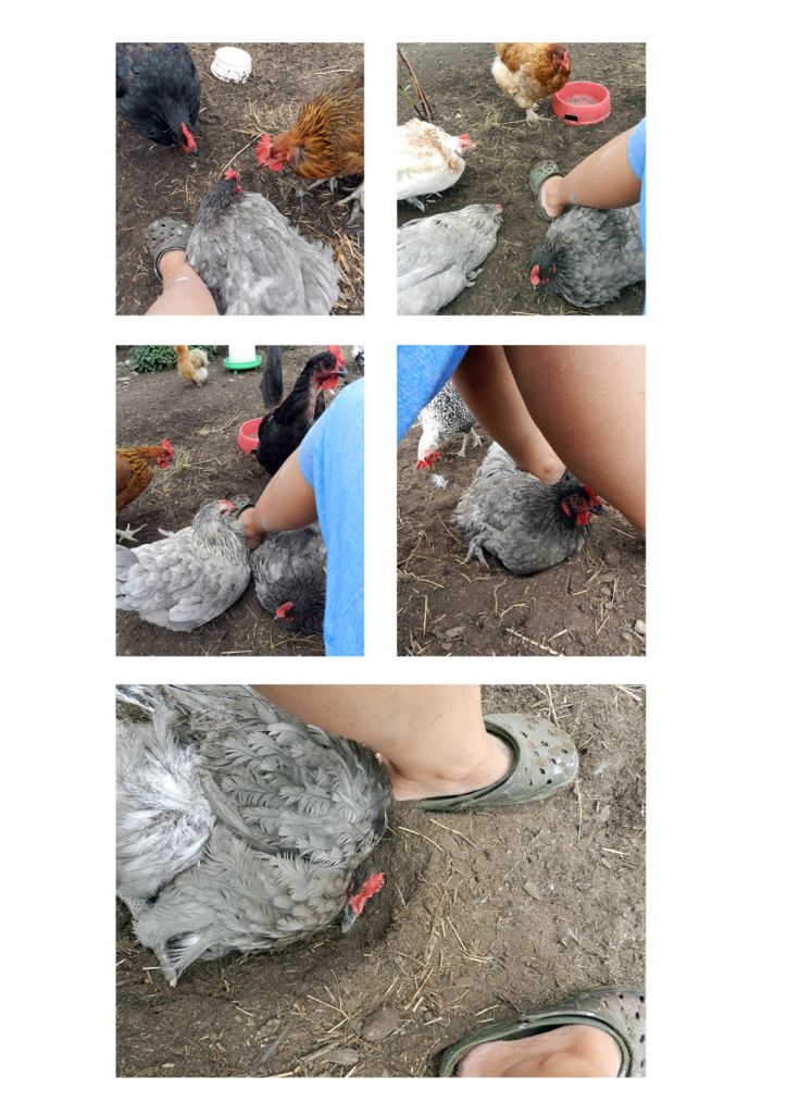 När jag ska hälsa på mina grannar så kommer alltid denna höna fram först.