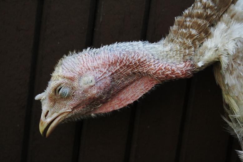 9 veckor gammal har han blivit nu och idag så "gobblade" han för första gången. Har verkligen blivit fäst vid dessa fåglar! Han sover (som vanligt) på bilden. =) "Cool" kille.