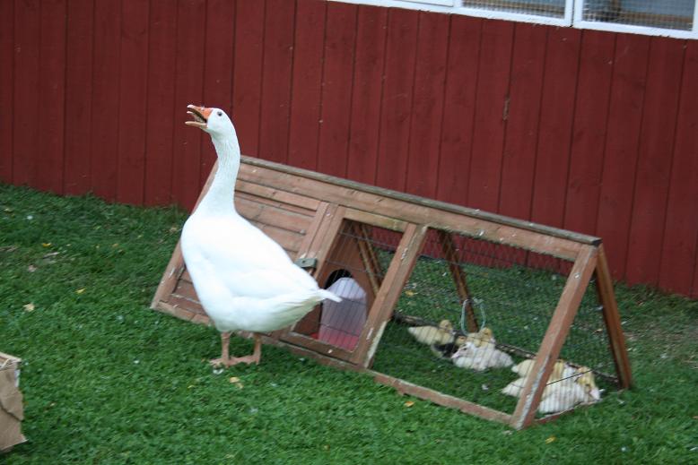 Förstår att besökarna som kommer är rädda för honom när han står och vaktar "sina" ungar (myskällingar). <br />Men egentligen är han en riktig fjant! haha.