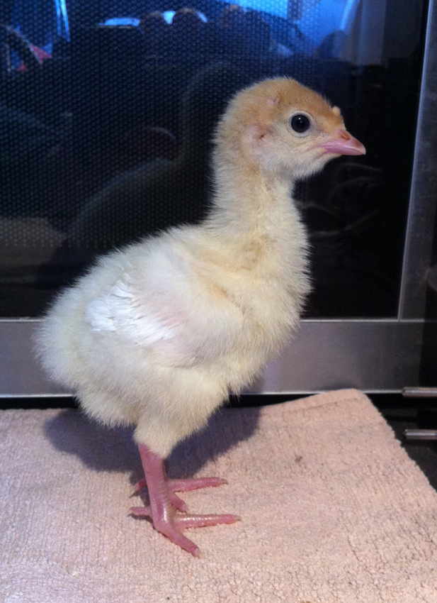Emils kalkontupp blev tagen av räven. Vi la in ett gäng gamla ägg + några nya som hade samlats från hönan en kort tid efter Turkey Boys död. Denna kyckling är vad vi lyckades få fram. Nu håller vi alla tummar o tår för att den klarar sig och hoppas på att det är en liten tupp ... Kallar den Hubert. =)